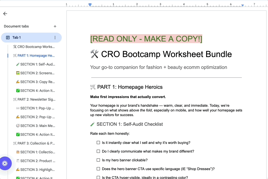 For a limited time only, meet: the FREE CRO worksheet bundle - 10+ pages of hyper-actionable exercises to help you make more sales 🛍️